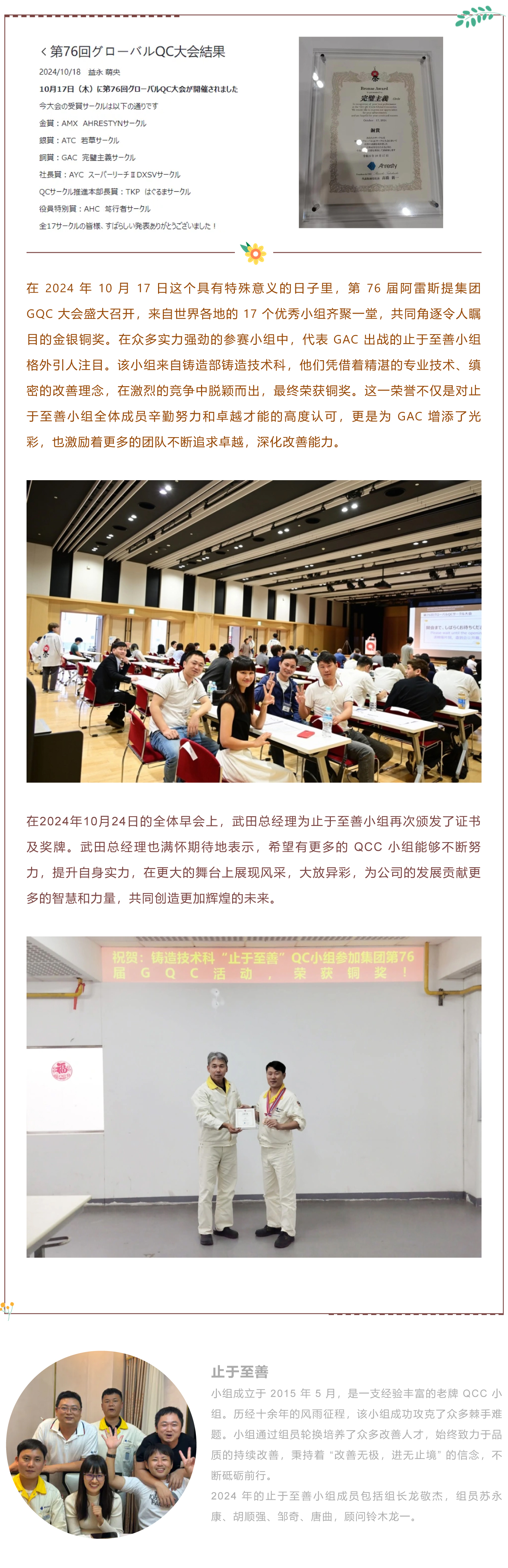 GAC小組榮獲集團(tuán)GQC大賽銅獎(jiǎng)